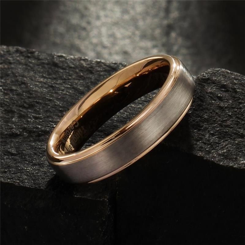 ALIANCA DE TUNGSTENIO DIAMANTADO IP ROSE (ROSE) COM FAIXA ESCOVADA CINZA CENTRAL