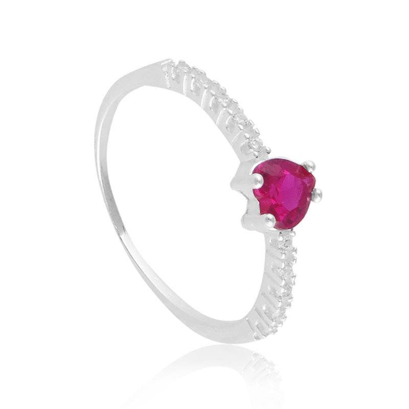 SOLITÁRIO COM SUA PEDRA LAPIDADA EM FORMATO DE CORAÇÃO, E EM UMA PORÇÃO DO PROLONGAMENTO DO SEU ARO COM MICROZIRCÔNIAS CRAVEJADAS.