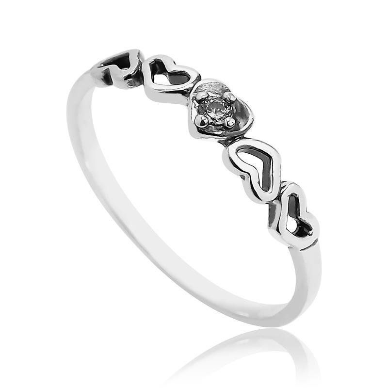 ANEL CORAÇÕES COM PONTO DE LUZ EM PRATA ENVELHECIDA
