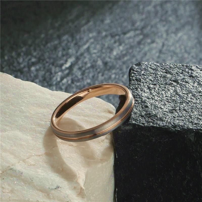 ANEL DE TUNGSTENIO 3 MM ESCOVADO SILVER COM FILETE NA COR ROSE