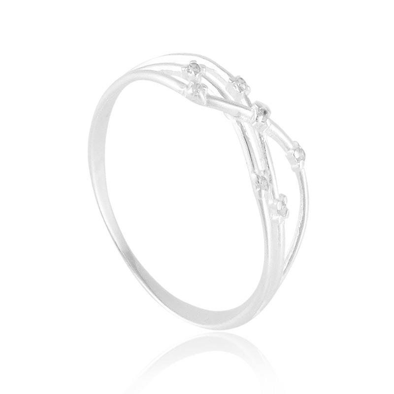ANEL ONDE O ARO SE TORNA TRIPLO E UM DESSES SE SOBREPÕE AOS OUTROS DOIS QUE SEGUEM O MESMO MOVIMENTO, SEMELHANTE A GALHOS. NA ESTENSÃO DELES HÁ PONTOS DE LUZ COM MICROZIRCÔNIAS CRAVEJADAS.