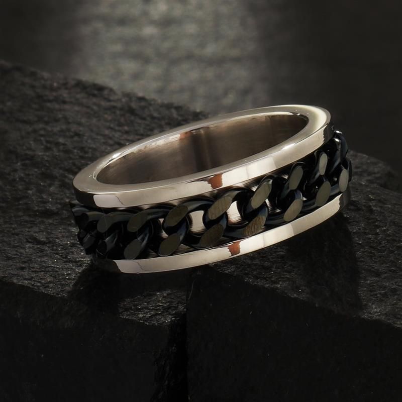 ANEL GIRATÓRIO DE AÇO POLIDO COM CORRENTE DE ELOS NA COR IP BLACK (PRETO)