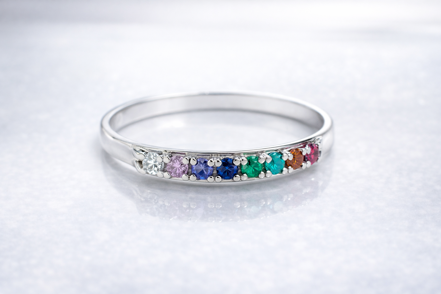 ANEL MEIA ALIANÇA EM PRATA 925 COM ZIRCÔNIAS COLORIDAS