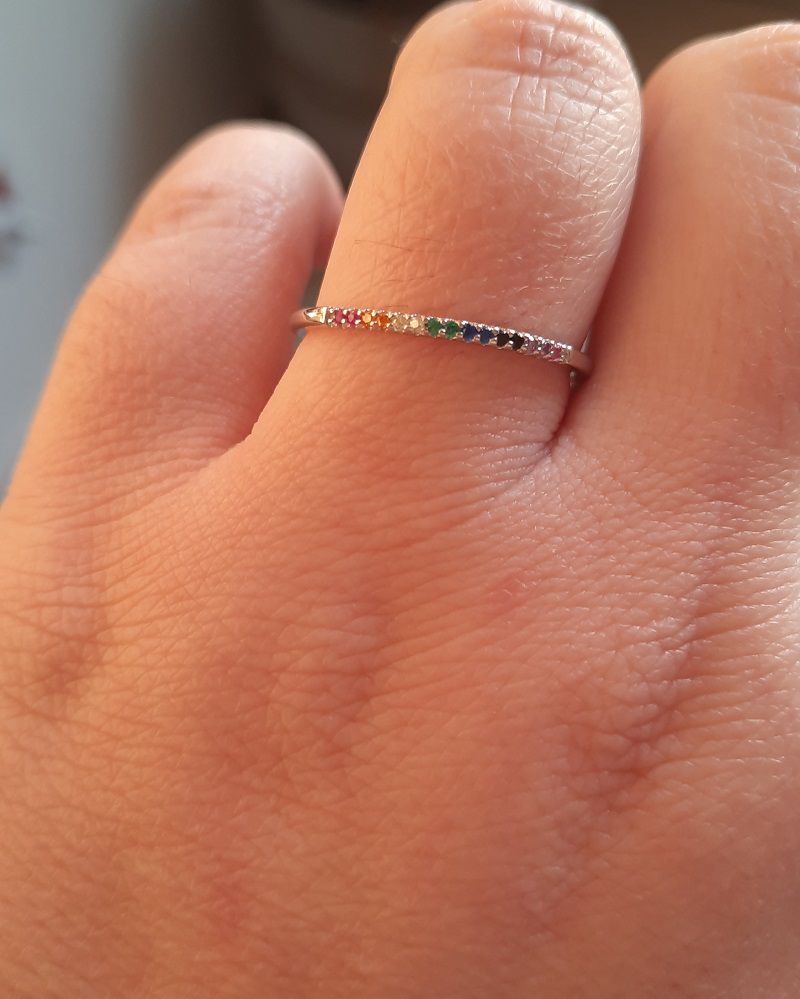ANEL MEIA ALIANÇA COM ZIRCONIAS COLORIDAS