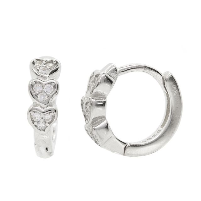 Argola de prata pura 925 com detalhes em formato de coração cravejados com pedras de Zircônias