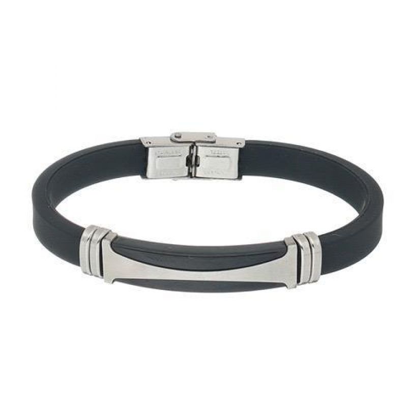 BRACELETE EM AÇO COM PULSEIRA EM SILICONE