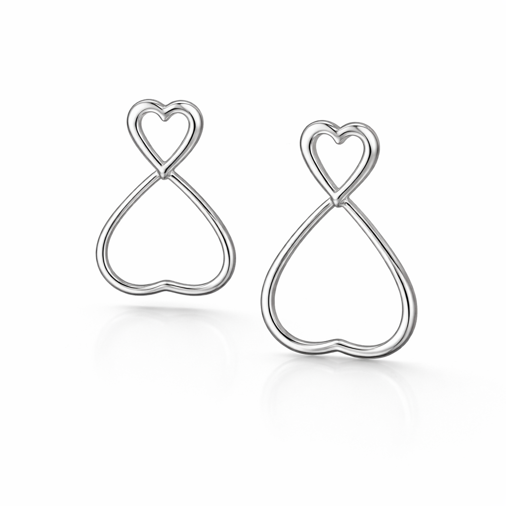 Brinco de Prata 925 Com Corações Vazados