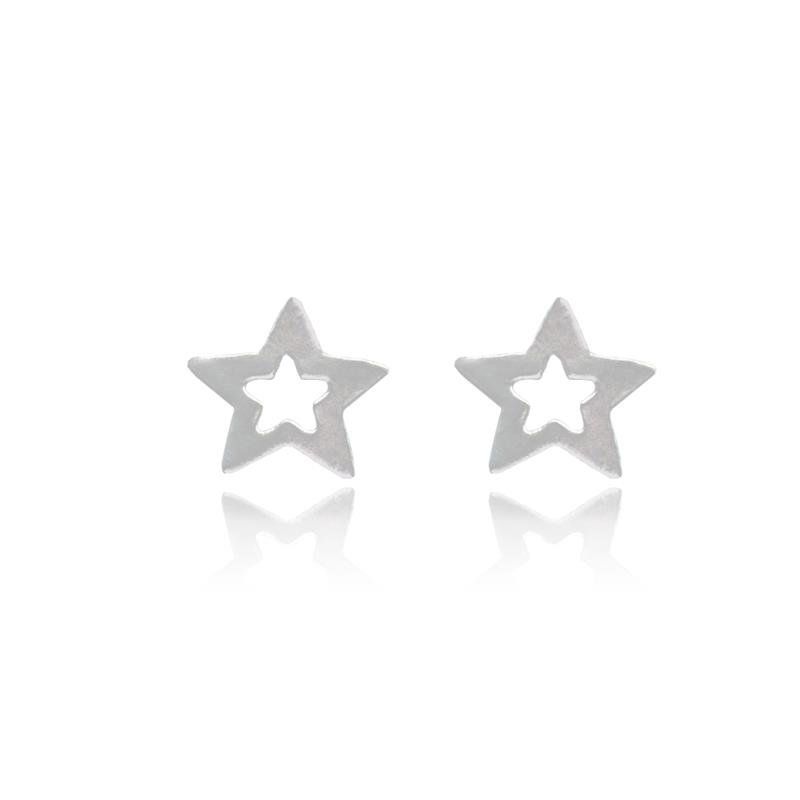 BRINCO DE ESTRELA DELICADA PRATA BRANCA/ÚNICO.