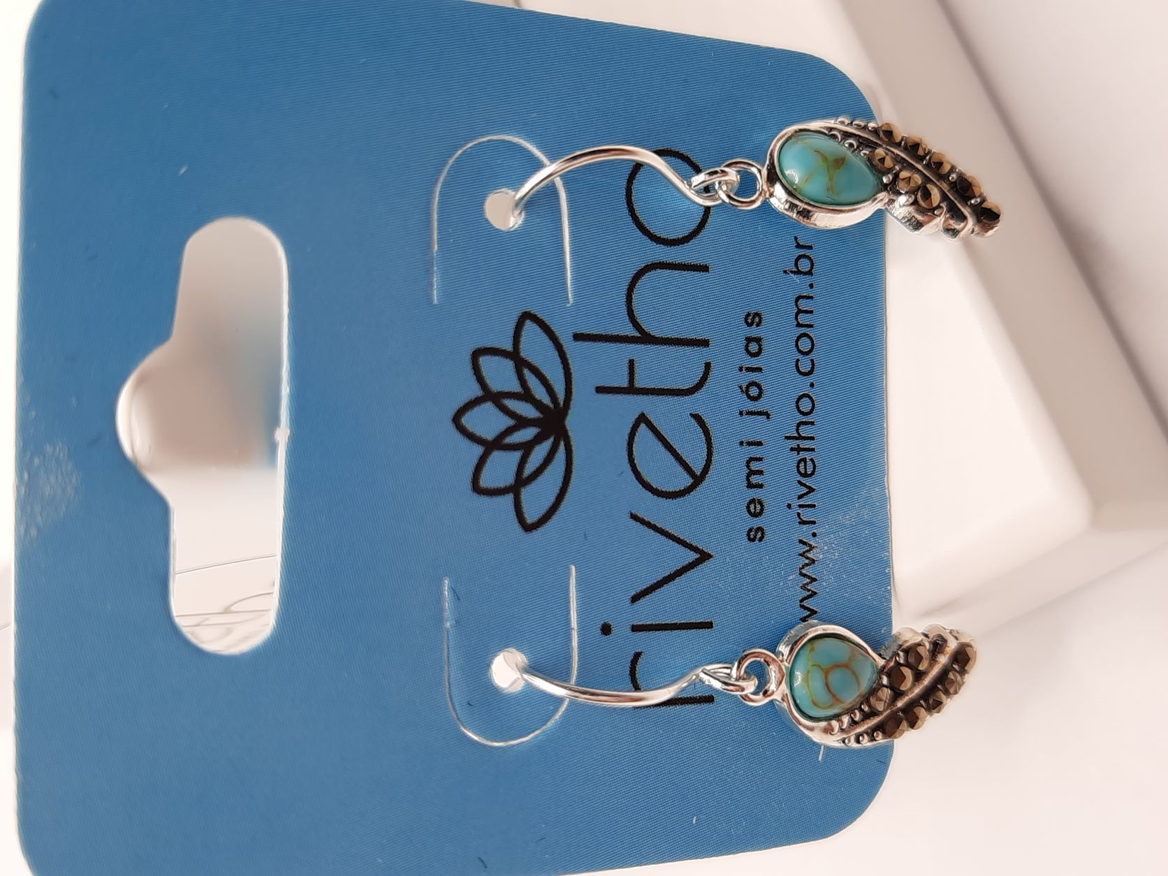 BRINCO DE PRATA GANCHO TURQUESA E MARCASSITA