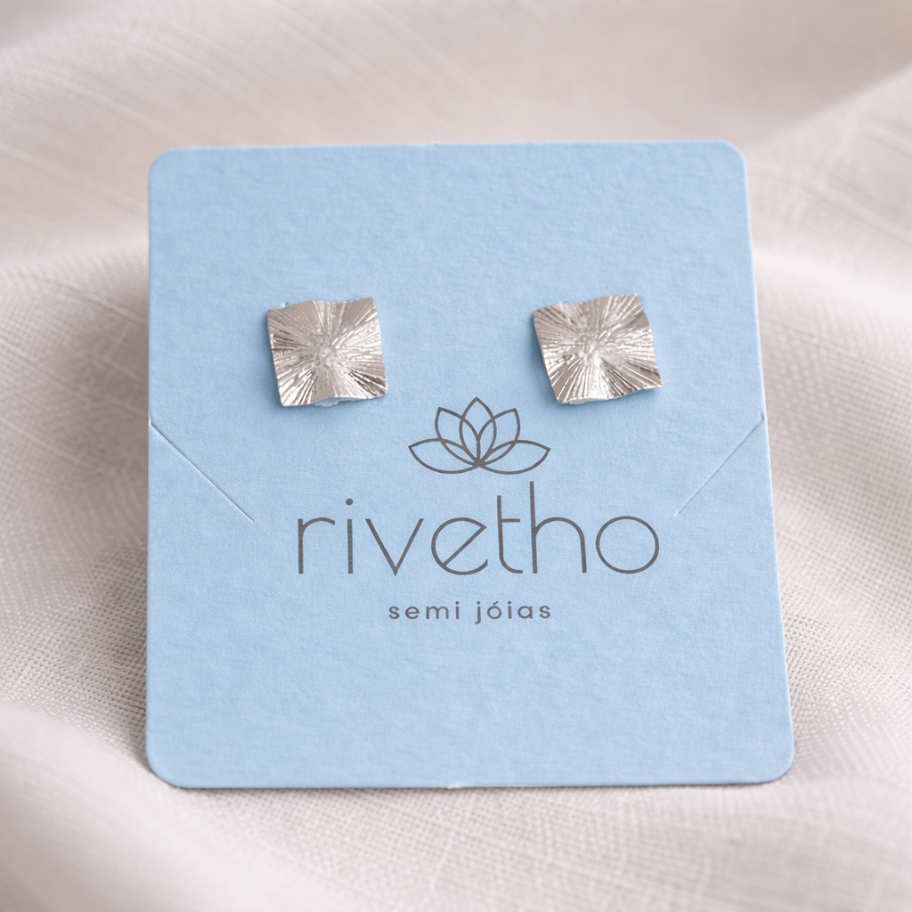 Brinco de Prata 925 Quadrado Texturizado Pequeno