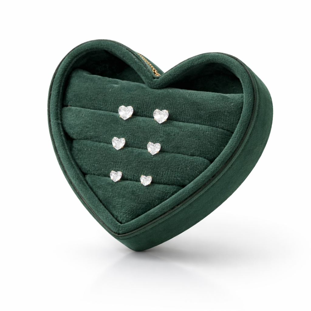 Trio de Brincos de Prata 925 Corações Zircônia Branca