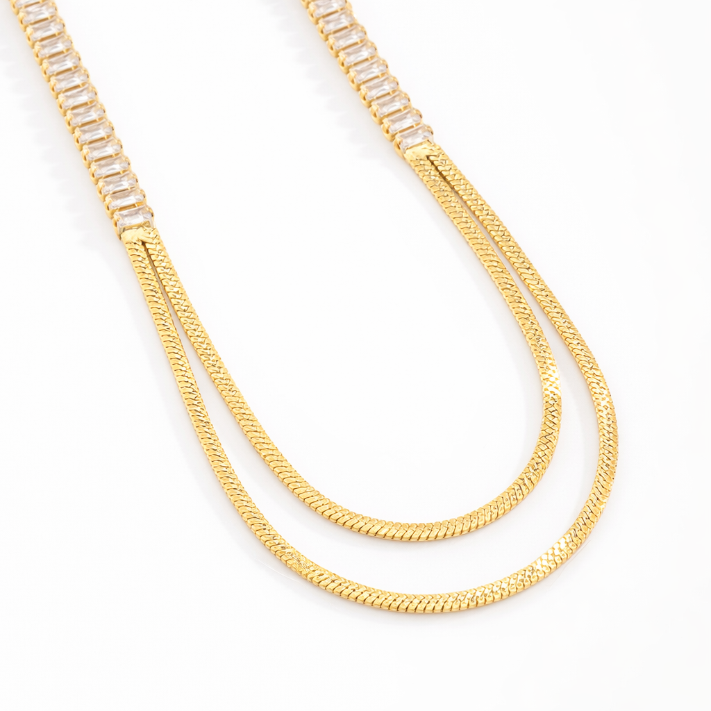 Colar com duas corrente modelo Snake e detalhes em Zircônias