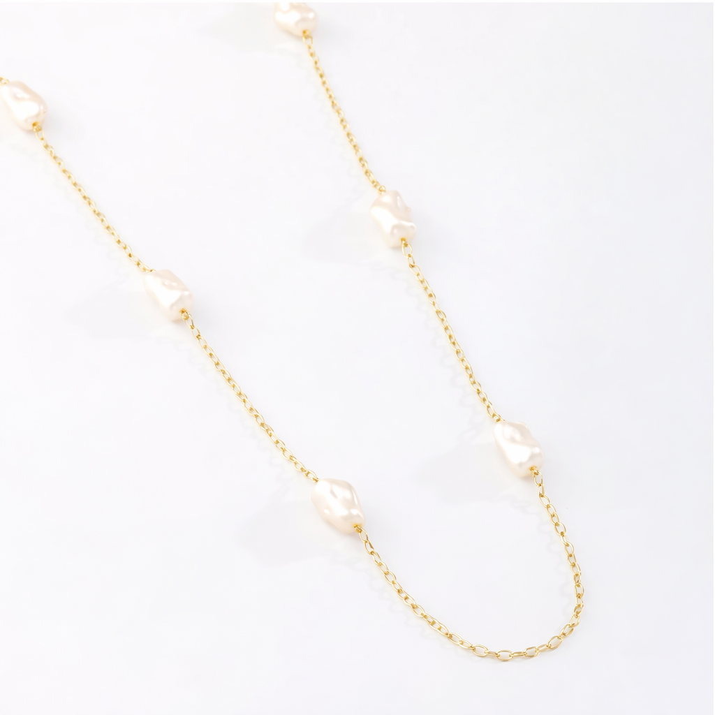 Colar Elo Oval 2x1 com Pérolas Irregulares