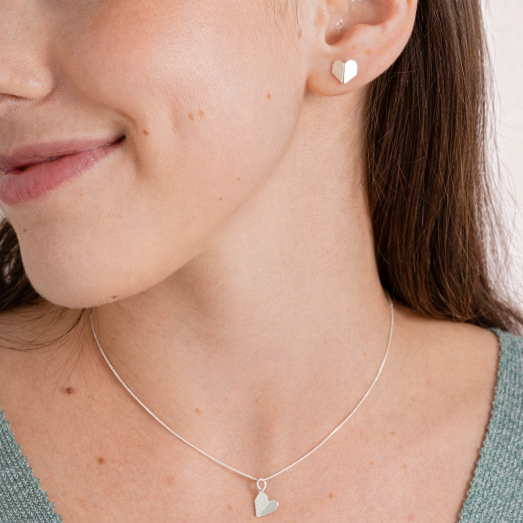 • Tamanho: Colar (45cm) / Brinco (7mm) / Coração Origami (8mm)