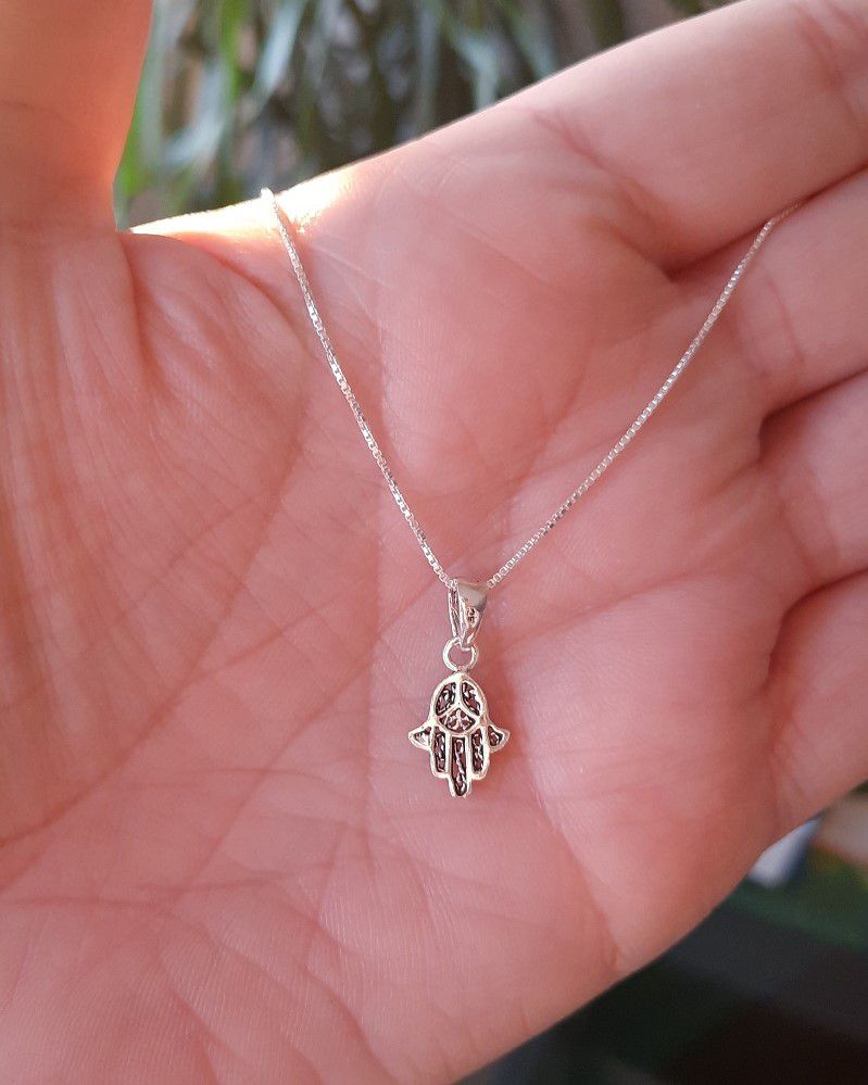Gargantilha com pingente de prata 925 Mão de Hamsa