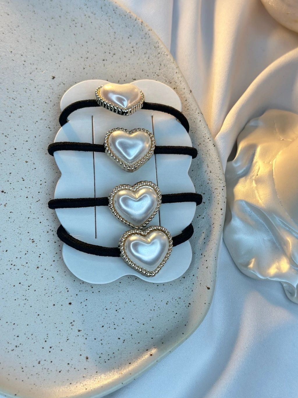 Kit com 04 Unidades Elásticos/ Xuxinhas/ Rabicó Com Pérolas Coração Infantil e Adulto