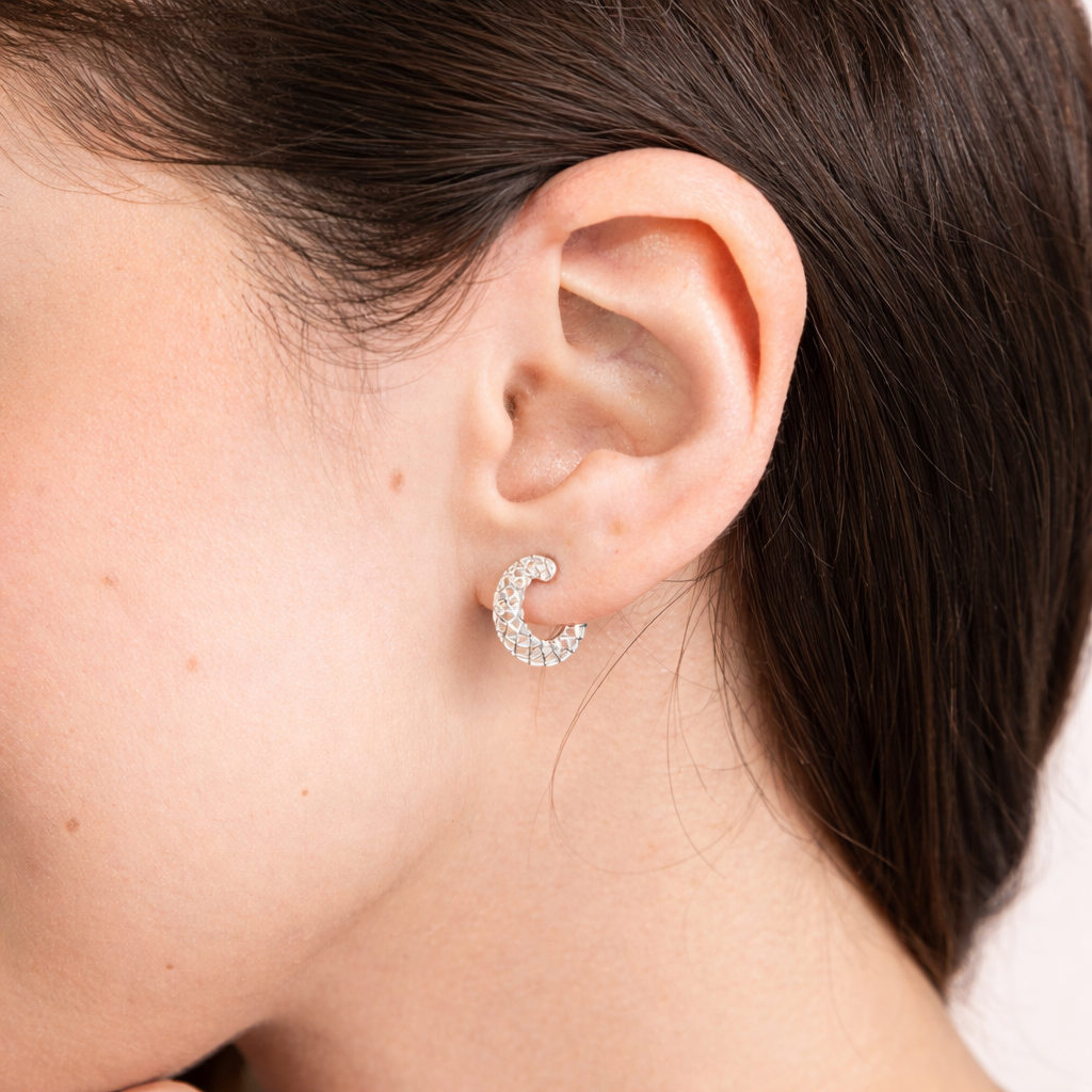 Meia Argola de Prata 925 Redonda Vazada Detalhada Média