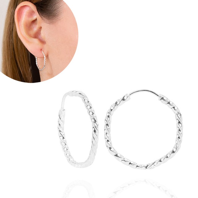 Argola em Prata 925 Hexagonal com fio torcido