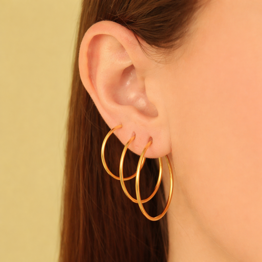 Trio Meia Argola Folheado em Ouro 18K - SEMIJOIA