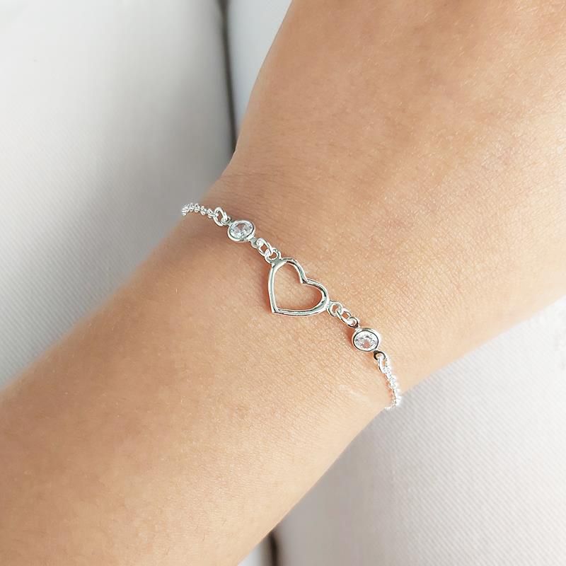 PULSEIRA COM UM CORAÇÃO LISO E DOIS PONTO DE LUZ.