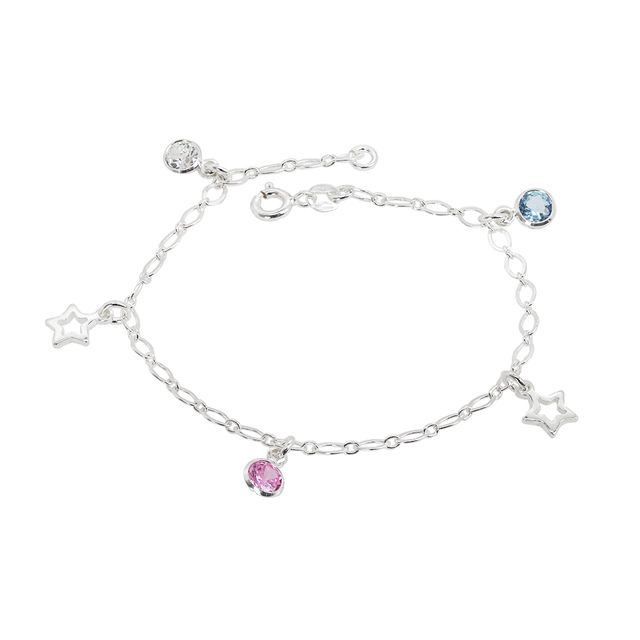 Pulseira confeccionada em Prata de lei 925 com Pingentes de estrela e zircônias coloridas